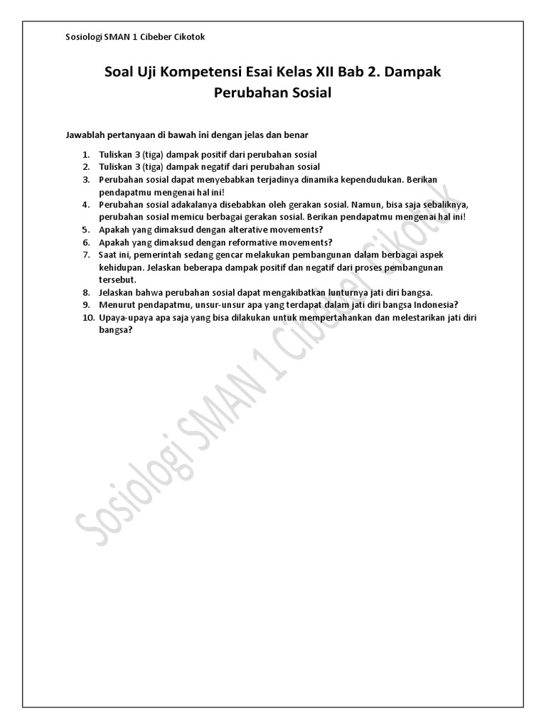 Kunci jawaban soal sosiologi sma uji kompetensi pilihan ganda kelas xii bab 1 materi perubahan sosial Kunci jawaban intan pariwara kelas 12 ppkn edisi lama. Pilihlah jawaban yang paling tepat 1. Kearifan lokal dan pemberdayaan komunitas (kurikulum revisi 2016) Soal pendalaman esai materi sosiologi kelas xii bab 1.